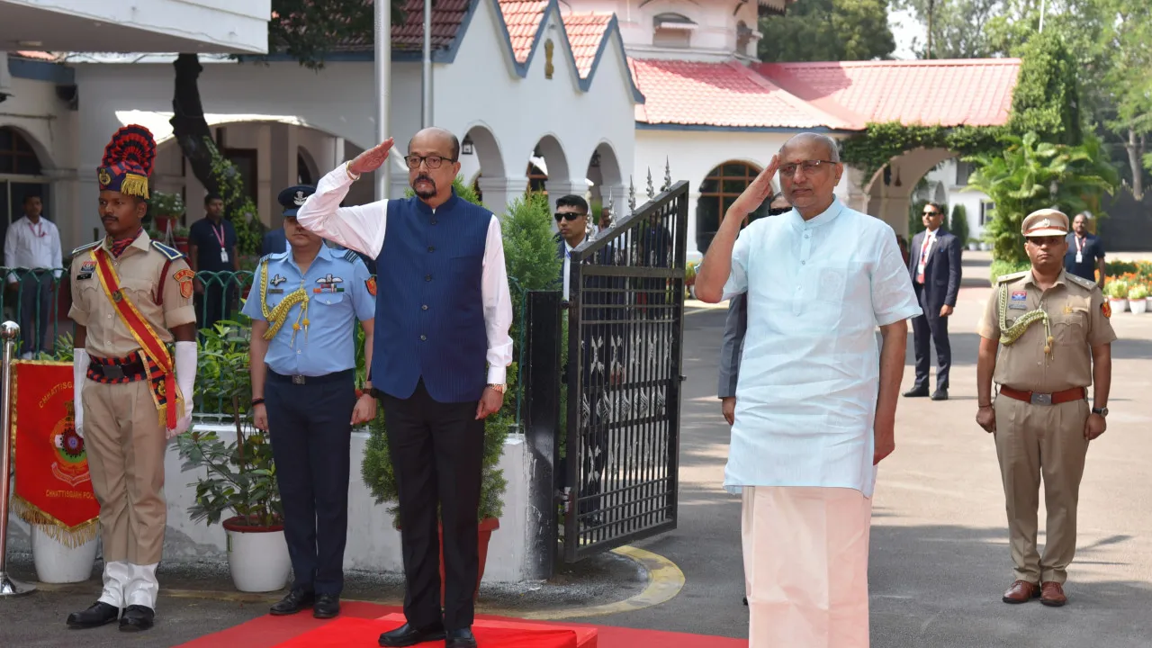 रायपुर। उपराष्ट्रपति सी.पी. राधाकृष्णन का आज राजभवन पहुंचने पर भव्य स्वागत किया गया। इस अवसर पर उन्हें गार्ड ऑफ ऑनर दिया गया। उपराष्ट्रपति के साथ छत्तीसगढ़ के राज्यपाल रमेन डेका भी उपस्थित रहे। समारोह के दौरान पुलिस दल ने औपचारिक सम्मान प्रस्तुति दी। राजभवन में हुए इस कार्यक्रम में वरिष्ठ अधिकारी एवं राजभवन के कर्मचारी भी मौजूद थे।